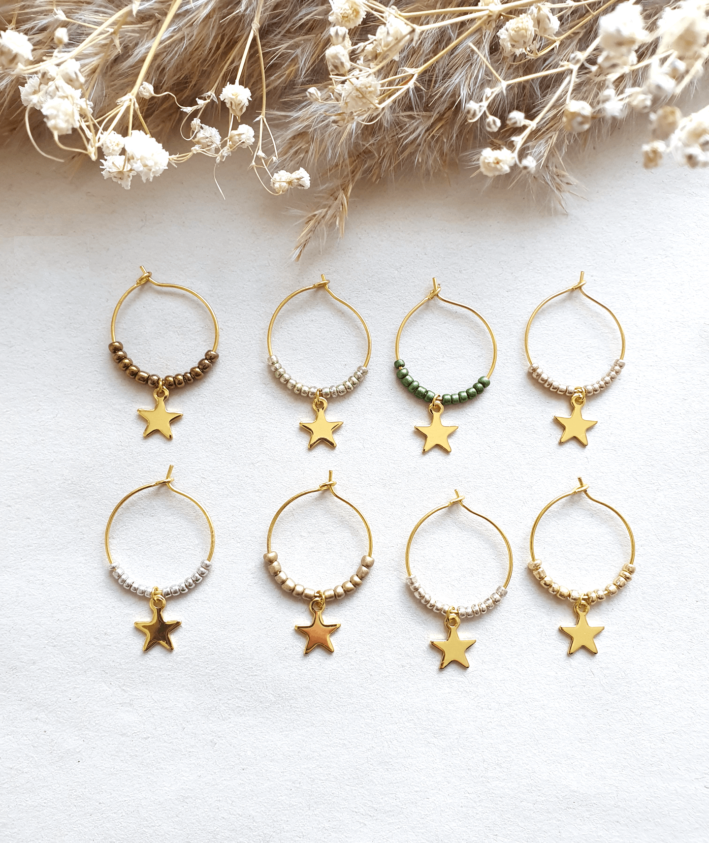 Totaal 8 stuks, ze komen in een leuk kadozakje. Ook in zilverkleur mogelijk!