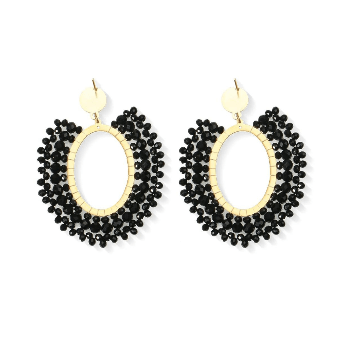 Hoe gaaf zijn deze leuke gouden oorbellen met zwarte kralen. Wij zijn helemaal fan van dit prachtige paar oorbellen van stainless steel. Deze oorbellen zijn verkrijgbaar in diverse kleuren: rood, groen, goud en zwart.