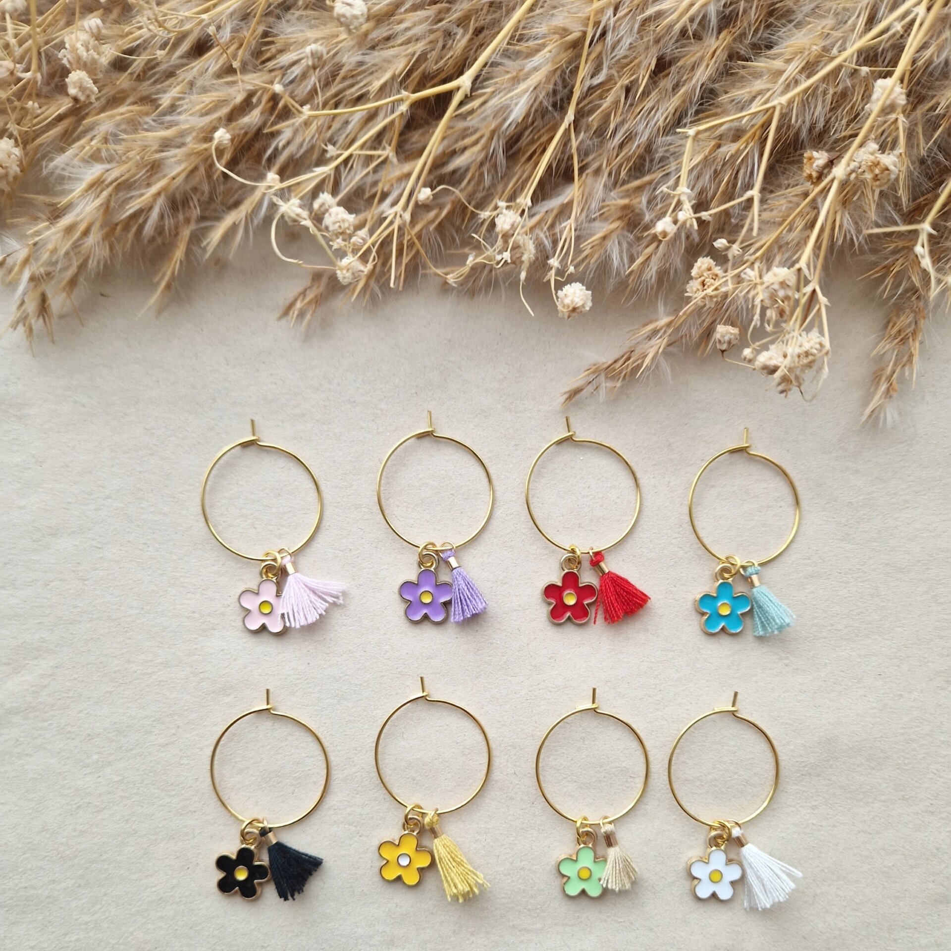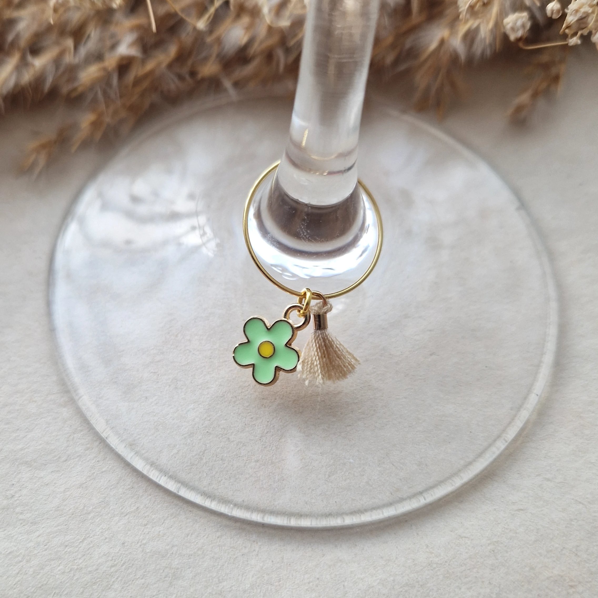Geef je borreltafel kleur met onze wijnglasringen. Elke ring is versierd met een fijn kleurig bloemetje en een speels kwastje, perfect om elk glas zijn eigen unieke charme te geven.