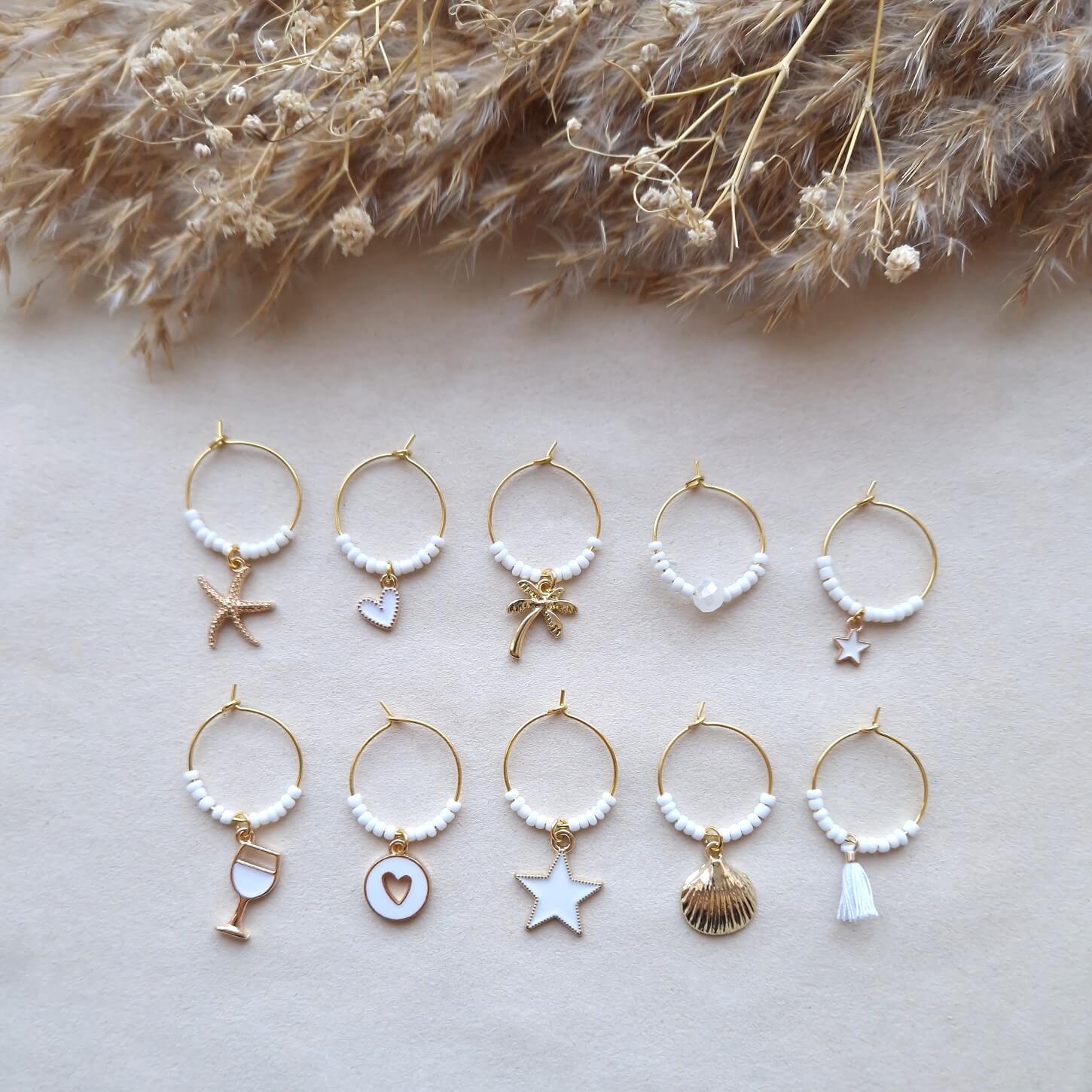 Deze leuke wijnglasringen in het wit zijn ideaal voor een feestje! Zo raakt niemand zijn of haar glas kwijt, 10 stuks.